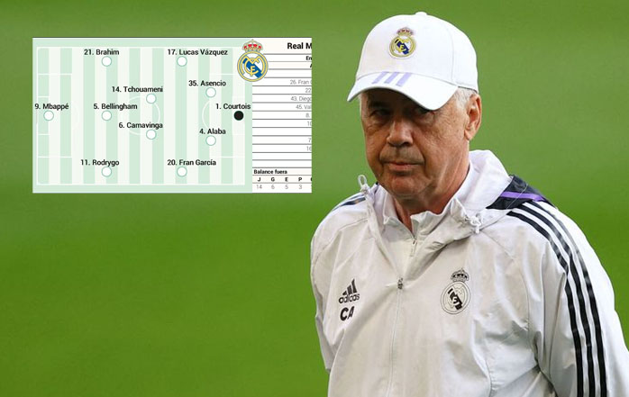 Courtois; Lucas Vázquez, Asencio, Alaba, Fran García; Tchouameni, Camavinga; Brahim, Bellingham, Rodrygo; Mbappé.