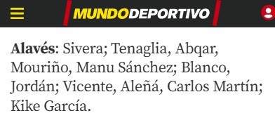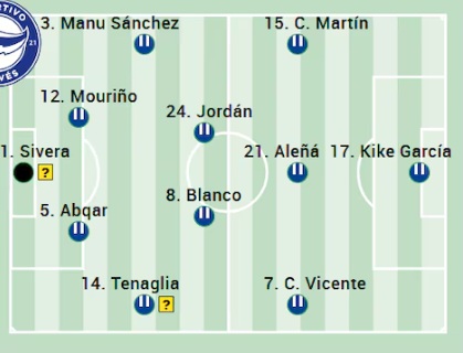 Alineación: Todo apunta a que Kike García debería ser el acompañante de Carlos Martín en punta una vez superadas sus molestias. El extremo derecho sigue manteniéndose en duda pese a que Carlos Vicente recuperó la titularidad en la última jornada. Jugadores como Jon Guridi o Pau Cabanes podrían amenazar su puesto en el once. La alineación probable del Deportivo Alavés buscará aprovechar la fortaleza en Mendizorroza, con una defensa sólida y un ataque que intentará sorprender al Rayo.