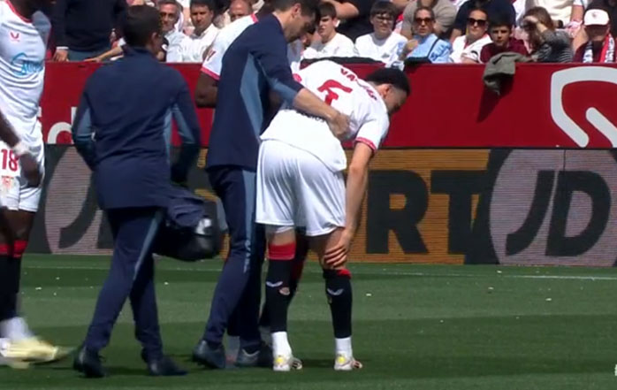 El delantero suizo del Sevilla, Rubén Vargas, se ha visto obligado a retirarse del terreno de juego en el minuto 10 del partido de este domingo por la tarde contra el Atlético de Madrid, debido a una lesión en los isquiotibiales de su pierna derecha. El futbolista intentó dar un taconazo para asistir a un compañero cuando notó un pinchazo en la parte posterior de la pierna. Tras ser atendido por los servicios médicos del club nervionense, Vargas tuvo que abandonar el campo cojeando y ayudado por los doctores. Todo apunta a que sufre una lesión muscular de carácter moderado. En su lugar ingresó al campo Isaac Romero.