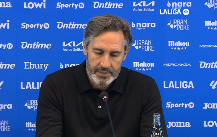 "Fíjate que, en el momento en el que ganamos el partido, no teníamos ni idea de la importancia del partido. Y creo que hemos hecho un partido serio, un partido en el que hemos provocado que el resultado fuera favorable. Y quizás, un poco lo de siempre que suele pasar: cuando tienes ocasiones claras, como hemos tenido, y no terminas de cerrar el partido, es un riesgo que puedes correr, porque en la parte final es normal que el equipo, en la situación del Leganés, vaya ya a tumba abierta y te puedas encontrar con esa acción que, seguramente —por lo menos la acción que me ha parecido en el campo— me ha parecido que era penalti, y puede pasar. Es una pena, porque creo que los chavales han hecho un buen partido, han demostrado que quieren ganar ya un partido. Pero bueno, se han juntado los errores nuestros y luego también hay una acción ahí de fuera de juego que sigo mirándola. No sé si hay alguien aquí viendo la imagen que se atrevería a pitar fuera de juego. Es ver algo que no se ve, por lo menos en la imagen que he visto yo, que creo que es la única que ha salido en televisión. Uno se decepciona con todo esto".