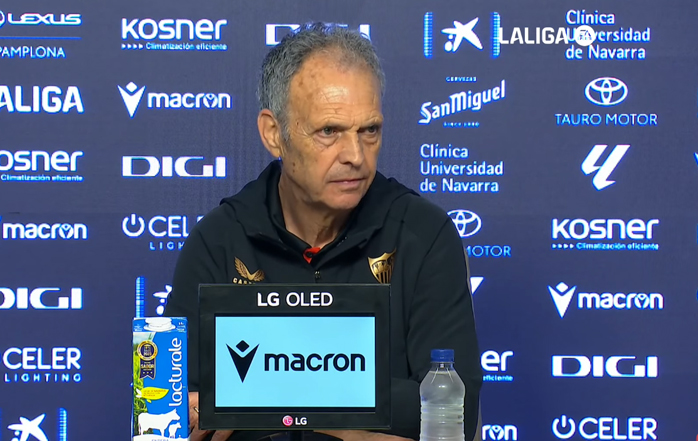 "Bueno, por la derrota… a ningún profesional nos gusta perder. O sea, no digo a mí más que a nadie, a ningún profesional, porque nosotros los profesionales vivimos, y los clubes viven, de la historia, de la suma de tres. La vuelta a El Sadar,... magnífico el estadio, no lo había conocido. Es un ambiente espectacular. Me alegro por la gestión, sobre todo su presidente, que tiene las cosas muy claras, de su junta directiva. Y me alegro del ambiente que hay, de lo bonito que es el estadio. Eso es bueno para el fútbol".