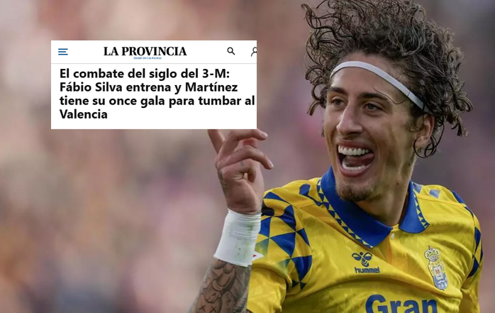En un ejercicio de arriesgado optimismo, el periodista Paco Cabrera firma en La Provincia una noticia en la que sitúa a Fábio Silva como titular indiscutible para el duelo decisivo entre la UD Las Palmas y el Valencia CF. Sin embargo, la realidad es bien distinta: el delantero portugués todavía no ha completado una sola sesión de entrenamiento con el grupo y su participación este sábado sigue siendo una incógnita.