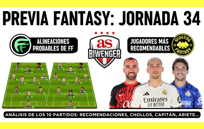 Once ideal, once de posibles chollos y mejores capitanes y arietes para la J34, por Scouting Biwenger