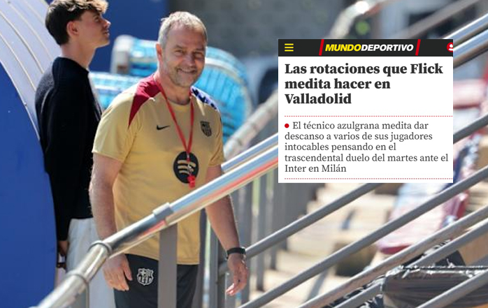 Hansi Flick, técnico del FC Barcelona, medita hacer varias rotaciones este sábado en el partido de LaLiga ante el Valladolid (21:00 horas), con la mente puesta en el trascendental duelo del martes frente al Inter en Milán, tras el 3-3 de la ida. A pesar de que el equipo necesita ganar para mantener su ventaja respecto al Real Madrid, Flick planea dar descanso a varios titulares, tras el gran desgaste acumulado en la final de Copa ante el Madrid y el exigente encuentro europeo.