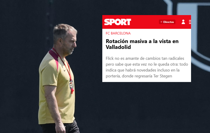 Hansi Flick, pese a no ser partidario de cambios drásticos, se verá obligado este sábado a introducir una rotación masiva en el once del FC Barcelona ante el Valladolid, debido al exigente calendario y la cercanía del decisivo duelo contra el Inter en Milán. Según informa Toni Juanmartí en Sport, el técnico alemán protegerá a varios titulares tras la prórroga ante el Madrid en la final de Copa y el reciente desgaste europeo.