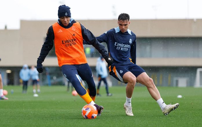 La sesión comenzó en el gimnasio y continuó sobre el césped con ejercicios de rondos y combinaciones con centros y remates a portería. Después, los jugadores disputaron un partido en un campo de dimensiones reducidas. El entrenamiento concluyó con varias acciones de ataque y finalización. Bellingham trabajó en el interior de las instalaciones. Camavinga, Militão y Carvajal continúan con sus respectivos procesos de recuperación.