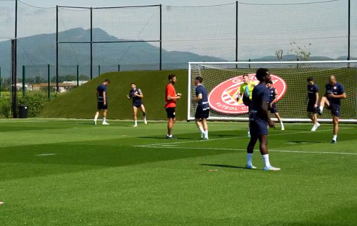 El Girona FC ha completado este miércoles por la mañana en las instalaciones de la Ciutat Esportiva de Vilablareix la primera sesión de entrenamiento de la semana, con el objetivo de comenzar a preparar el encuentro del próximo domingo contra el Atlético de Madrid, correspondiente a la jornada 38 del campeonato de liga. Este enfrentamiento se disputará a las 14:00h en el Estadi de Montilivi.