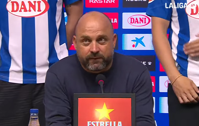 "Me quedo con todo. Me quedo con muchos de vosotros, que habéis estado detrás en momentos jodidos apoyando. Otros no, otros no,... pero bueno,... Al final, yo entiendo a la gente del Espanyol cuando no gana su equipo, que se enfade, pero creo que a veces se tiene que ser objetivo y tener en cuenta de dónde veníamos. Cómo subimos, que nos costó mucho. Hemos hecho una inversión de cero euros, en Primera. Nos hemos salvado con 42 puntos, que es una barbaridad. De los últimos años, la puntuación más alta. Tiene mucho mérito lo que han hecho los chicos. Lo hemos pasado muy mal, hemos tenido momentos muy duros donde la gente se iba a la calle. Al final, hemos luchado mucho, hemos trabajado mucho. Agradecer al director deportivo, que ve mi trabajo en el día a día, agradecer a los jugadores su trabajo, pero ha sido un año muy duro y hoy ha sido todavía más duro. No ha tenido nada que ver con el del ascenso".