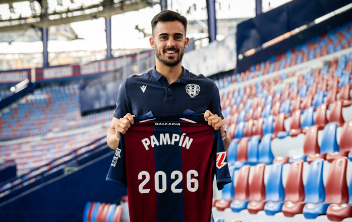 Diego Pampín seguirá defendiendo la camiseta del Levante UD hasta junio de 2026, tras el acuerdo alcanzado entre el club y el jugador para prolongar su contrato. El lateral gallego llegó el pasado verano procedente del FC Andorra con el sueño de jugar en el Ciutat de València como local, después de haberlo hecho como visitante en temporadas anteriores. Su rendimiento y compromiso no pasaron desapercibidos y logró consolidarse como una pieza importante en el equipo.
