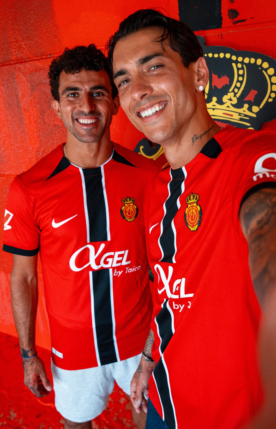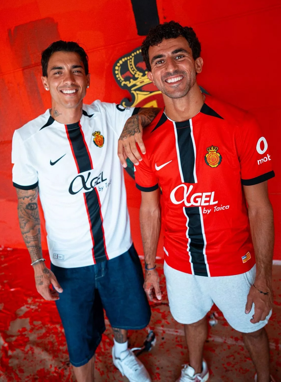 Este lunes ha sido el turno de la segunda equipación, presentada por tres jugadores isleños: Mateu Jaume, Sergi Darder y Antonio Sánchez. El diseño mantiene el estilo vertical de la primera, pero en tonos blancos con una franja negra central. Ellos mismos pintaron de rojo una pared del estadio con el característico trazo negro, en un gesto simbólico.