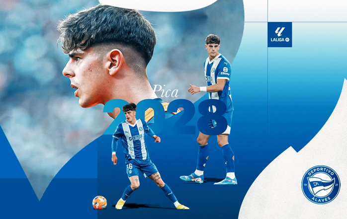 El Deportivo Alavés ha anunciado la renovación de Adrián Hernández 'Pica' hasta junio de 2029, consolidando así su apuesta por uno de los jóvenes talentos con mayor proyección de la cantera albiazul. El central salmantino, nacido en Alba de Tormes en 2002, recibirá ficha del primer equipo de cara a la temporada 2025/26.