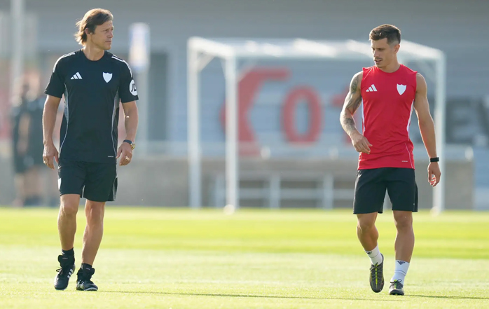 El Sevilla FC de la temporada 2025/26 ha echado a andar en la mañana de este domingo sobre el césped de la Ciudad Deportiva José Ramón Cisneros Palacios. Tras completar durante el viernes y el sábado los habituales reconocimientos médicos, la plantilla blanquirroja ha saltado al césped de las instalaciones de la Carretera de Utrera alrededor de las nueve de la mañana para ejercitarse por primera vez a las órdenes de Matías Almeyda y su cuerpo técnico. Los jugadores nervionenses han realizado las tareas programadas divididos en dos grupos.