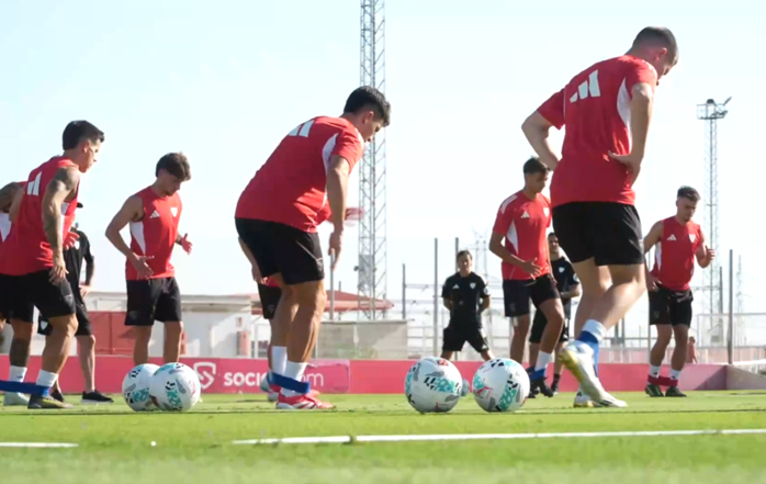 El Sevilla FC ha completado en la tarde de este martes la segunda sesión de trabajo del día y la cuarta de la semana. Al filo de las 19.00 hora saltaron los futbolistas al césped de la ciudad deportiva en el cual el esférico fue de nuevo protagonista.