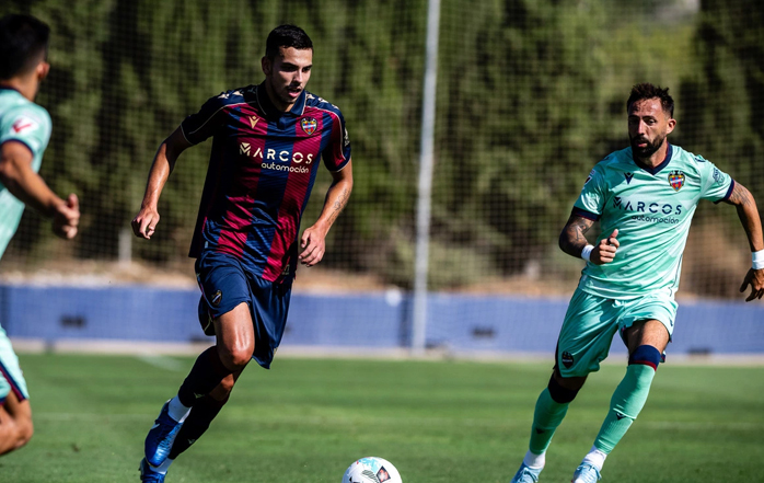 El Levante UD ha cerrado su segunda semana de pretemporada con un partido de entrenamiento entre los propios integrantes de la plantilla en la Ciudad Deportiva. Divididos en dos equipos, uno con la primera equipación y otro con la tercera camiseta recién presentada, los futbolistas han podido poner en práctica los conceptos tácticos trabajados bajo las órdenes de Julián Calero durante los últimos días.