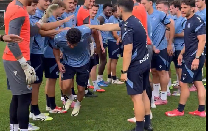 El técnico del conjunto txuri urdin, Sergio Francisco, ha dirigido una sesión en la que Caleta-Car y Guedes han entrenado por primera vez con sus nuevos compañeros, después de ser anunciados como nuevos fichajes del club. Además, Oskarsson también ha estado con el grupo, recuperado de la sobrecarga muscular que le había mantenido fuera del trabajo en equipo. Sin embargo, Sadiq y Zakharyan han sido las ausencias destacadas, debido a problemas físicos no especificados por el club.