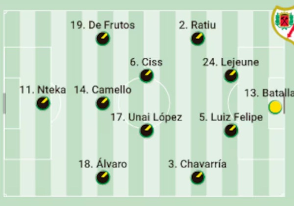 En cuanto al once titular, las grandes dudas son las situaciones de mercado de Andrei Ratiu y Pathé Ciss, que han pedido salir y cuyas titularidades no son seguras. Balliu y Valentín esperan su turno por si se les presenta la oportunidad. Luiz Felipe parece haberse hecho un sitio nada más llegar al lado de Lejeune y el centro del campo experimenta un año más dudas en el doble pivote. Arriba, De Frutos, Nteka, Camello o Álvaro García, con Pedro Díaz a la banda izquierda, es la otra gran incógnita.