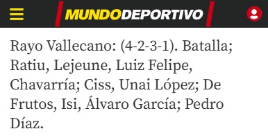 FútbolFantasy elegirá como prensa especializada del Rayo a Marca, As y Mundo Deportivo. Consulta los onces probables para la jornada 1 del Rayo de cada medio de comunicación.