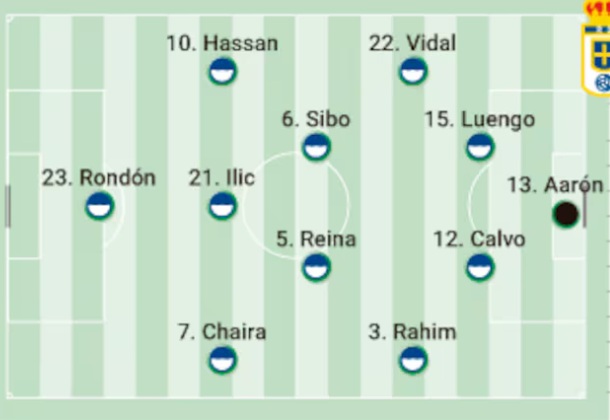El Real Oviedo visitará el Estadio de la Cerámica con un once muy definido. La baja de Costas por sanción provocará que Luengo, habitualmente suplente, acompañe a Calvo en el eje central. La medular será para Sibo y los fichajes Ilic y Reina, ante la baja de Colombatto. Arriba, Rondón y Viñas se disputan la primera titularidad como delanteros.