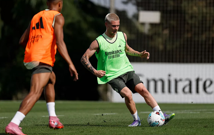 Los jugadores comenzaron con una sesión de activación en el gimnasio y una fase de vídeo con análisis táctico en el interior. Sobre el césped, el equipo llevó a cabo un entrenamiento marcado por una gran intensidad, en el que realizaron ejercicios de combinación y llegadas, tiros a portería y partidos de cinco contra cinco en dos campos. Finalizaron con series físicas. Mastantuono completó la primera sesión de trabajo con sus nuevos compañeros tras ser presentado ayer. Camavinga, Endrick, Bellingham y Mendy continúan con sus procesos de rehabilitación.