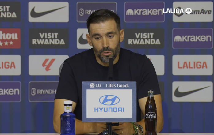 "Bueno, yo creo que en este nivel de fútbol nadie es asequible, ¿no? El año pasado nadie era asequible en segunda y en primera muchísimo menos. Yo creo que cuando estamos ahí todos estamos por méritos propios y porque hacemos muchas cosas bien, ¿no? Desde el que va a quedar primero hasta seguramente el que quede el último, ¿no? Es una de las mejores ligas del mundo, tenemos dos puntos y realmente todavía pues no hemos hecho nada, tampoco ahora podemos sacar demasiado pecho. Eso, disfrutarlo, tener ilusión, que esto nos siga llenando de energía, de convencimiento, ponerle mucho el foco a ser autoexigentes y seguir mejorando, porque tenemos muchas cosas todavía en las que tenemos que incidir y en las que podemos mejorar. Y bueno, con tranquilidad, nosotros a lo nuestro, a nuestro trabajo y a preparar lo mejor posible el siguiente partido."