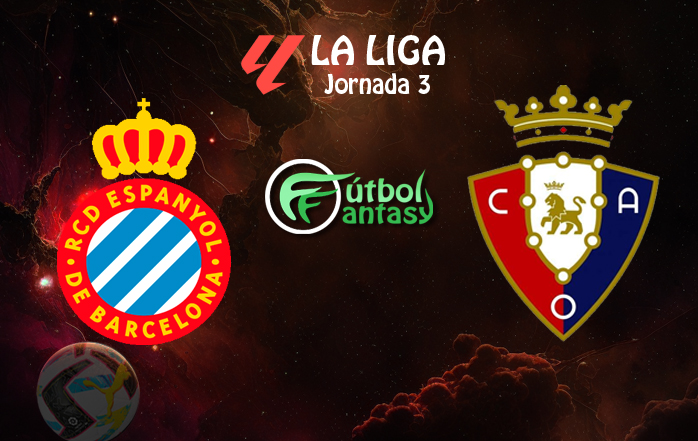 El RCD Espanyol y CA Osasuna se verán las caras este domingo 31 de agosto a las 19:30 horas en el RCDE Stadium, en la tercera jornada de Liga. El conjunto perico llega con buenas sensaciones tras un sólido inicio: victoria frente al Atlético de Madrid en el debut y empate a dos goles ante la Real Sociedad en la última jornada, sumando así 4 de 6 puntos posibles. Los rojillos, en cambio, presentan un balance equilibrado tras caer en el estreno ante el Real Madrid y vencer por la mínima al Valencia en la segunda fecha.