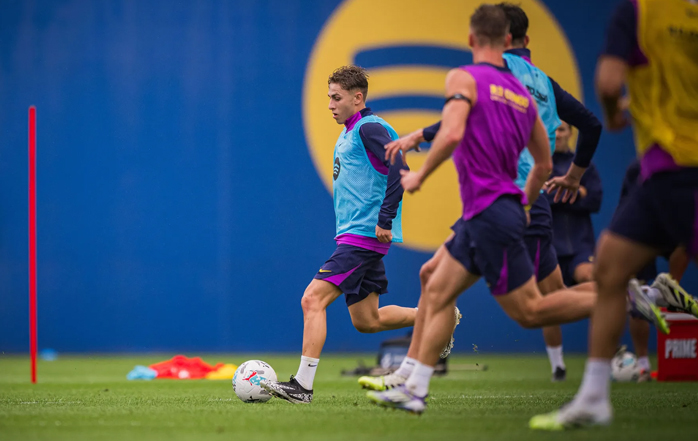 El técnico del conjunto culé, Hansi Flick, ha dirigido una sesión en la que volvió a contar con la presencia de Cubarsí, Pedri, Fermín, Olmo, Ferran y Lamine Yamal. Lamine, Pedri y Lewandowski, que también jugó su último partido con Polonia el domingo y marco, se ejercitaron en el gimnasio de la Ciutat Esportiva. Por contra, De Jong y Gavi difícilmente entrarán en la convocatoria, mientras que la vuelta de Marc Bernal será muy progresiva. En este escenario, los jóvenes Dro, Toni Fernández y Guille podrían ganar protagonismo en los planes del entrenador alemán de cara a la cita liguera frente al conjunto che.