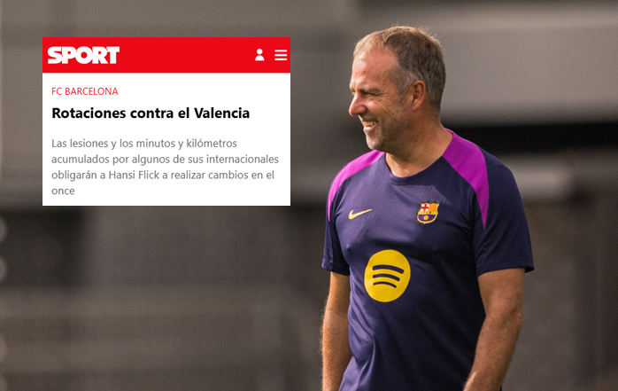 Según la información publicada en Sport por el periodista Ferran Correas, Hansi Flick se verá obligado a introducir cambios en su once inicial el próximo domingo frente al Valencia. Las lesiones y la carga de minutos acumulada por algunos internacionales tras el parón de selecciones condicionan la planificación del técnico alemán, que además tiene en el horizonte el debut en la Champions League contra el Newcastle.