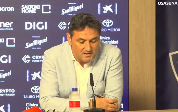 "En la presentación de Sheraldo Becker como nuevo jugador de Osasuna para las dos próximas temporadas, y bueno, al final un poco comentaros, creo que ya lo he hecho en algún otro medio, pero bueno, lo hago aquí con vosotros ahora, que somos un equipo que incorporamos muy poco, somos el equipo que menos ha fichado de la Liga, pero entendimos que amén de otras posiciones que estábamos buscando, que hablaremos luego lo que queráis, entendemos que el perfil de Sheraldo nos venía muy bien porque nos daba más herramientas, porque el perfil que él tiene, en mi opinión, en la plantilla solo lo tiene Víctor Muñoz y creíamos que nos hacía mejores, entonces que le daba más herramientas al míster y que esta posibilidad pues teníamos que aprovecharla, porque es verdad que contactamos con su entorno hace tres semanas o por ahí un mes, sí que es cierto que más, un poco más, porque estoy pensando, porque ya estamos casi a 15, que realmente no podíamos llegar a lo que el mercado proponía en ese momento para su transferencia, y una vez que fue terminando el mercado y ese perfil de jugador lo seguíamos manteniendo porque consideramos que lo necesitábamos, pues fuimos a por él. El conocimiento que tenemos de él es amplio y bueno, esperemos que sus características entendemos que nos pueden sumar mucho, y bueno, agradecerle que haya apostado por nosotros y os dejo con él que es el verdadero protagonista y luego hablo yo lo que estiméis."