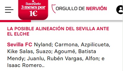 FútbolFantasy elegirá como prensa especializada del Sevilla a Diario de Sevilla, ABC de Sevilla, Estadio Deportivo, MuchoDeporte, Marca, As y Mundo Deportivo. Consulta los onces probables para la jornada 36 del Sevilla de cada medio de comunicación: