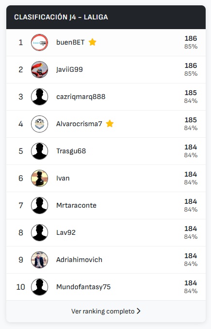 ¡buenBET y JaviiG99 ganan la jornada 4 de LaLiga de Predicted11.com!