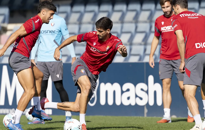 Aimar Oroz ha seguido con su proceso de recuperación y continúa trabajando al margen, mientras que Moi Gómez, pese a que ayer estuvo con el grupo, hoy ha vuelto a ejercitarse en solitadio y solo ha hecho el calentamiento junto al resto de sus compañeros, lo que le mantiene en duda para el próximo compromiso liguero.