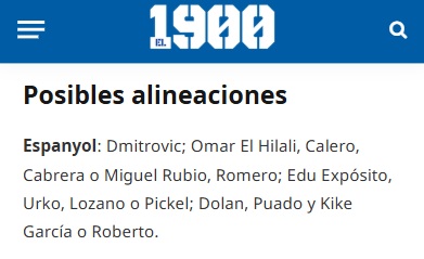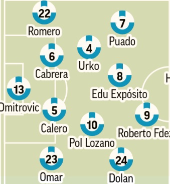 En cuanto al once titular, Manolo no es muy amigo de las rotaciones, por lo que alineará su mejor once, siempre y cuando no haya fatiga acumulada. Riedel o Miguel Rubio entrarán si Cabrera no se recupera a tiempo, mientras que Kike Garcia o Roberto se disputan la punta de lanza. Otros como Pickel o Jofre tampoco deberían descartarse buscando algo de frescura.