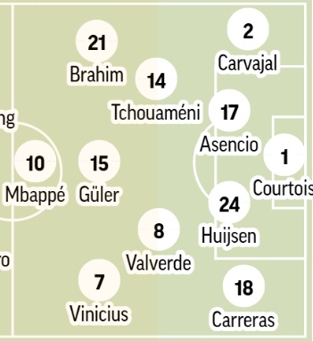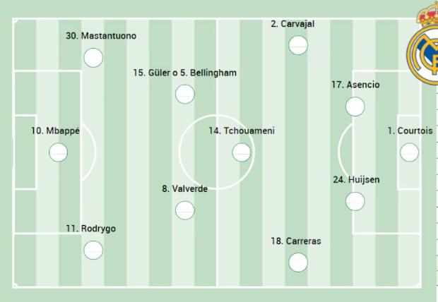 Xabi Alonso seguirá rotando, pero con cabeza. Huijsen apunta a volver a la titularidad, dejando un hueco para Militao o Asencio, o para los dos, si descansa Carvajal. Fran García sigue amenazando a Carreras con una rotación, mientras que Arda Güler volverá al once tras disfrutar de un merecido descanso. Camavinga, Bellingham, Brahim o Rodrygo también podrían disfrutar de una titularidad.