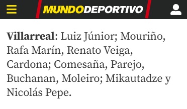 Marcelino seguirá rotando en todas las lineas y se espera la vuelta al once de jugadores como Mouriño, Cardona y Veiga en defensa, este por la baja de Foyth. En la medular, Parejo y Comesaña parten con ventaja, aunque el de Coslada ha perdido bastante jerarquía este curso. En las bandas llegaría el turno para Manor Solomon y Buchanan. Arriba, Oluwaseyi amenaza con dar un descanso a Pépé.