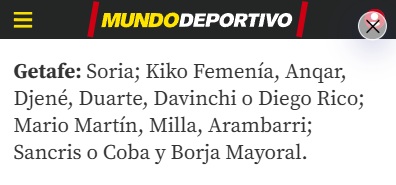 No se descarta alguna novedad tampoco en el once del técnico alicantino, como la vuelta de Femenia y Diego Rico en los carriles o de Sancris, Coba o Kamara en ataque. Javi Muñoz también amenaza la titularidad de Mario Martín tras un partido discreto en el que tuvo que ser sustituido antes del descanso. Djené también fue uno de los señalados, pero su jerarquía es más elevada.