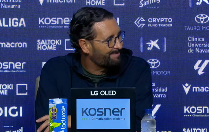 "Bueno, el equipo ha competido, el equipo no le ha perdido la cara al partido, hemos dominado. En el primer tiempo hemos tenido a Osasuna prácticamente sin generar ocasiones, hemos jugado en su campo, no han podido desarrollar su juego y, sin embargo, hemos tenido ocasiones, hemos tenido el dominio y el equipo me ha gustado. En el segundo tiempo también me gustó el equipo a pesar del golpe del empate en el descuento, y hemos tenido ocasiones para ponernos por delante y haber conseguido la victoria, pero el fútbol es así, tenemos que aprender de esto y levantarnos y seguir. Todos sabemos las circunstancias que empezamos el campeonato y hay que poner en valor el inicio del campeonato del equipo."