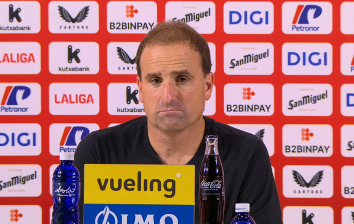 "Sí, creo que lo has explicado bastante bien, ¿no? Creo que fue un inicio muy malo por nuestra parte, donde el Athletic nos ha superado claramente y fruto de ello, cuando me rodeas tanto el área, pues te puede pasar como la jugada del penalti que ha pasado. Tenía la sensación ya en el primer tiempo de que el partido se estaba igualando y que estábamos creciendo en el partido. Bueno, creo que en el segundo tiempo todavía hemos estado mejor, hemos metido el gol y tenía la sensación de que estábamos bien, incluso mejor que ellos, faltando 10 minutos. Ha sido un mazazo ese segundo gol, sobre todo por cómo ha sido, un despeje de una apertura a banda donde no hemos defendido ese pase atrás y es un palo duro. El equipo creo que ha ido creciendo en el partido, ha terminado en área rival y ha demostrado carácter, alma, todo eso, pero claro, cuando tienes ese inicio, es difícil en Primera División poder sumar."