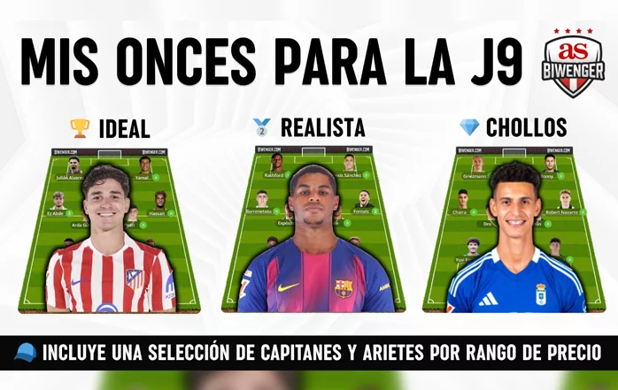 Mis 3 Onces para la J9: Ideal, Realista y Chollos + Picks de Capitán y Ariete, por Scouting BWG