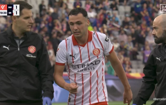 El lateral derecho del Girona, Arnau Martínez, que hoy actuaba de mediocentro contra el Barcelona en Montilivi, en la jornada 9 del campeonato de Liga, se ha visto obligado a pedir el cambio en el minuto 78 del partido de este sábado por unas molestias que le provocaron una cojera. El futbolista, autor de la asistencia en el gol de Witsel, tuvo que ser atendido para dejar su sitio a Lass Kurouma, aunque no parece que tenga ninguna lesión de gravedad.