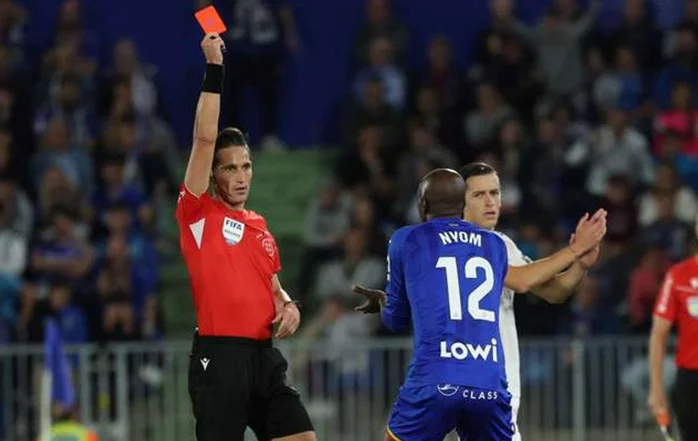 La acción sancionada ocurrió cuando Vinicius trató de desbordar a Nyom en carrera y el defensa azulón interrumpió su avance, golpeándole con la pierna y con la mano en el rostro. Munuera Montero mostró la tarjeta roja directa apenas 44 segundos después de su entrada al campo, en un partido que marchaba 0-0 y que el Real Madrid acabaría ganando gracias a un gol de Mbappé.