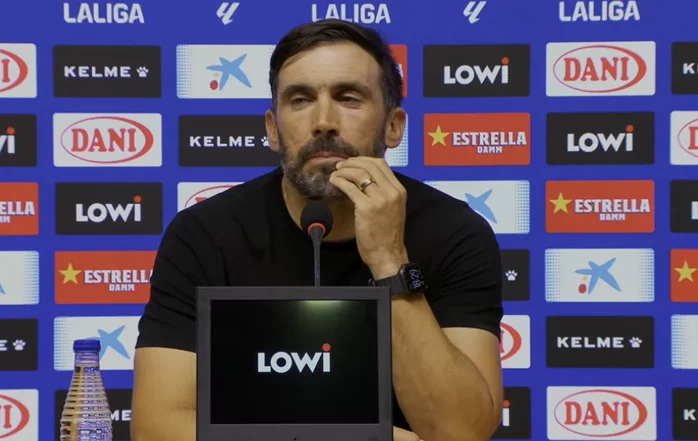 "Yo creo que, a poco que los jugadores hayan visto algún partido o hayan estado un poco atentos, del Espanyol me refiero, o hayan estado un poco atentos a lo que se les ha dicho esta semana de sus virtudes y demás, no te debería sorprender. Incluso con el equipo que ellos sacan hoy, todavía más claro para poder presionar más y correr al espacio en contraataques. Nosotros hemos permitido una barbaridad de contraataques, primero porque hemos atacado mal, porque cuando íbamos a campo contrario no estábamos bien colocados, no elaborábamos bien, no desgastábamos, no hemos estado precisos en acciones técnicas. No hemos estado bien, y me da igual que seamos el Elche. No pienso ni en salvarme ni en rascar puntos; pienso en las cosas que el equipo tiene que hacer, las que puede hacer, las que ha hecho. Hoy ha estado muy lejos de ese Elche que hemos visto otras veces y que quiero que seamos."