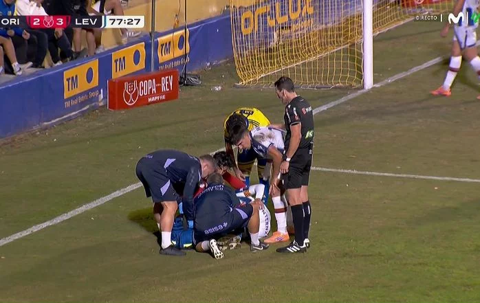 El Levante disputa su debut en la Copa del Rey ante el Orihuela, en un encuentro muy igualado que se mantiene con ventaja para los granotas (2-3). La nota negativa ha llegado en el minuto 79, cuando Pablo Martínez ha tenido que abandonar el campo tras una acción fortuita en la que ha caído con claros gestos de dolor.