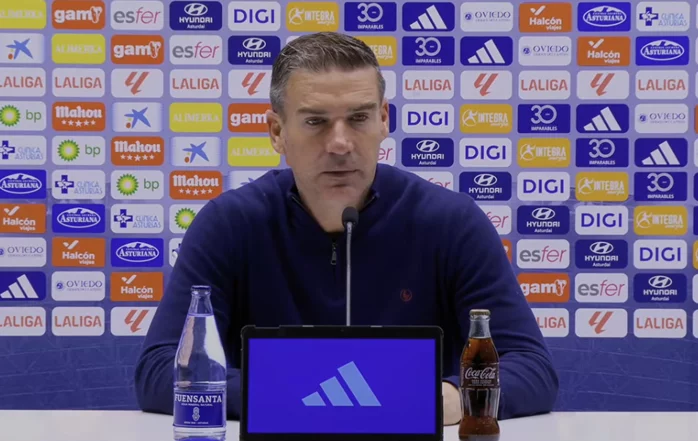 "Es tu sensación y no puedo pelear contra eso. La sensación de cada uno es la que es. Pero ya te aseguro yo que no. No, ni va a pasar ni pasa. Simplemente que aquí somos 23 jugadores y el que demuestre que tiene más posibilidades de rendir bien para el Oviedo, a mi opinión, que si estuviera otro sería otra opinión, y también muy válida, es que tenemos que dar más el bloque de lo que estamos haciendo y luego la gente que sale dar más. Y ahí se cambian las situaciones. El otro día en Girona vi 60 minutos buenos, hoy he visto más constante todo y entendía que los cambios tenían que ser un poco más tarde. Tenemos que pelear porque esos cambios nos acaben de dar ese plus que tienen que darnos al final del partido, sobre todo por elección mía. Tengo que intentar elegir bien. Como dije el otro día, yo siempre me suelo equivocar en los cambios, no solo cuando pierdo, cuando gano también digo tenía que haber sacado más tarde a este o más pronto al otro o tenía que haber metido esto porque después del partido todo el mundo puede opinar y decir yo también lo hago, qué mal has hecho esto. Pero durante el partido te aseguro que lo que intento es ganar siempre. No me verás un cambio para defender y ahí entra la mentalidad de cada uno. Estamos en Primera y en Primera hay que pelear, y si no juegas hay que morirse para jugar porque es una oportunidad única y hay muchos jugadores que tocan por primera vez y quieren quedarse. Entonces hay que pelear."