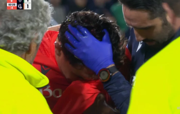 El lateral derecho venezolano de la Real Sociedad, Jon Mikel Aramburu, se ha tenido que retirar del terreno de juego del Martínez Valero durante el partido de este viernes contra el Elche, correspondiente a la jornada 12 de Liga, debido a un choque de cabezas con John Chtauya. El futbolista txuri urdin saltó a despejar un ablón, cuando su cabeza impactó con la del defensor del conjunto franjiverde. Tras ser atendido por los servicios médicos del club vasco, terminó abandonando el campo por su propio pie, algo aturdido, dejando su sitio a Aritz Elustondo a pocos minutos del final del partido.