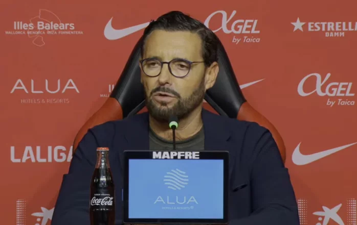 "No iniciamos como habíamos trabajado, como habíamos hablado. El Mallorca entró con un poquito más de intensidad, un punto más de intensidad en el partido. Nos sorprendieron con ese gol y, a partir de ahí, el equipo lo ha intentado. El equipo ha ido de menos a más, lo hemos intentado de todas las maneras posibles. Ellos se juntaron, defendieron con mucho orden, con mucha acumulación de futbolistas. La verdad es que el Mallorca ha hecho el partido que les interesaba. Ha habido muchas faltas, muchas interrupciones, eso nos ha privado de tener un poquito más de ritmo, pero el equipo lo ha intentado en todo momento. No se les puede reprochar absolutamente nada a los chicos. Y bueno, en la jugada del penalti, yo creo que la ha visto toda España, todo el mundo que ha visto el partido. Es una acción clara, una acción que interrumpe la posibilidad de que Mauro haga un control. Se desentiende totalmente y, bueno, se pitan penaltis como ese siempre. Lo incomprensible es que no se nos haya pitado a favor, cuando se nos han pitado en contra otros penaltis muchísimo menos claros que el de hoy. No tengo nada más que decir. No entiendo por qué no se ha pitado."