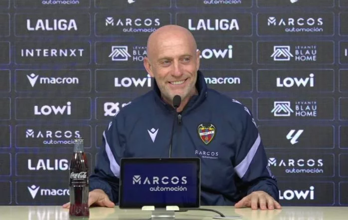 "Yo me encuentro fenomenal porque soy un tipo, primero optimista y segundo que intento disfrutar mi día a día en la vida. Y si estoy en el Levante y estoy en Primera División, pues me lo estoy intentando llevar a la máxima expresión y a disfrutarlo lo máximo que puedo. Intento también generar en mis jugadores la sensación de que no se dejen manejar por la clasificación. Que la clasificación no sea lo que nos mueva. Porque entonces el que va último, el que va penúltimo, el que va cuarto con la cola, no podría hacer nada. Porque si te atenazas en la vida, entonces sí que no vas a ser tú mismo. Por tanto, el mensaje mío es de que hay que ser optimista. De que hay que seguir agarrándose a las cosas que estamos haciendo bien y tener mucha confianza. Tener mucha confianza en que de todo esto se sale siendo un equipo. Estando unidos y como he dicho antes, siendo una manada. Una manada, y si puede ser, de lobos. Que no abandonan a nadie. Y no lo digo en tono de broma. Lo digo de verdad, porque creo en ello. Si somos una manada, que no dejamos a nadie atrás, que peleamos por lo nuestro, que luchamos con todo y que creemos en lo que hacemos, los resultados van a llegar y saldremos de esa situación. Sabemos que no es lo que nos gusta ni es donde queremos estar, pero también estamos convencidos de que podemos sacarlo."