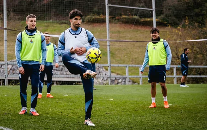 El técnico del conjunto txuri urdin, Sergio Francisco, ha dirigido una sesión en la que Igor Zubeldia ha vuelto a trabajar al margen, lo que mantiene al defensa como seria duda para el fin de semana. A esta ausencia se ha sumado la baja ya confirmada de Mikel Oyarzabal, que engrosa una lista de jugadores fuera de combate formada también por Orri Oskarsson, Yangel Herrera, Jon Karrikaburu y Rupérez. Con buena parte del once condicionado por estas ausencias, el entrenador y su staff continúan ajustando mecanismos y probando alternativas para llegar al duelo ante el conjunto groguet con garantías competitivas.