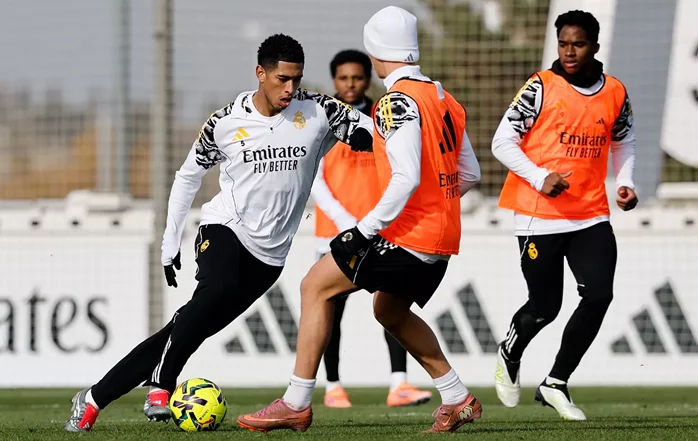 A continuación, completaron trabajo táctico y acciones combinadas con finalización a portería. Para terminar, disputaron un partido de 10 contra 10. Militão completó toda la sesión con el grupo; Huijsen, Alaba y Carvajal trabajaron en el interior recuperándose de sus dolencias. Asencio estuvo ausente por gastroenteritis, pero ya recuperado de los calambres.