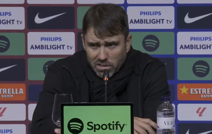 "Nosotros vamos de tú a tú con todo. Obviamente con distintas estrategias, o distintos sistemas, o preparamos distintos partidos, también pensando en el rival y en lo que podemos hacer. Pero yo no sé a dónde va ni cómo ha jugado el Barcelona antes, pero sí que tiene mucha gente de ofensiva. Importante que esa gente de ofensiva, cuál puede ser el déficit más grande que pueden tener en la recuperación. Desde ahí, teniendo jugadores tan desequilibrantes hacia adelante, también les cuesta a la hora de recuperar. Por eso le da de tratar de detener, de manejar la pelota. Ahora, claro, vuelvo a decir sobre el partido que hicimos. En la segunda mitad, si vos saltás ahí con la atracción de la pelota y le das espacio a esa gente, te lastiman mucho. Pero no es ni por cómo estuvo en la semana o antes el Barcelona. Creo que hemos preparado, como te dije, un partido para venir a jugar de igual a igual. Y lo intentamos hacer contra todos. ¿Cómo va a ser este partido? Pensando en que Barcelona tiene algún problema o no. Yo de los rivales no me gusta hablar ni opinar. Tienen un plantel con unos jugadores espectaculares, un entrenador de primerísimo nivel mundial. Pero bueno, también para crecer, tenés que jugar contra los mejores, intentar estar a la altura de los mejores. Y hoy creo que a la vez estuvo a la altura del partido. Siempre hay cosas para corregir, vuelvo a decir. Y sabiendo el rival que teníamos enfrente. Pero vi un equipo valiente, un equipo que siempre intentó jugar y un equipo inteligente, como te decía, sabiendo que teníamos que estar en partido. Si nos abríamos en la segunda mitad, nos iban a lastimar antes. Y si ves la posesión de Barcelona, que han sido posesiones muy largas en la segunda mitad, eran casi sin tiro a portería. Las dos primeras llegadas han sido de pelota parada. Tanto el cabezazo como la de Raphinha afuera del área. Te estoy hablando mientras intento acordarme de la jugada. Pero sabíamos que si no abríamos la segunda mitad con espacio, nos iban a lastimar mucho. Y hemos estado en partido hasta el final."