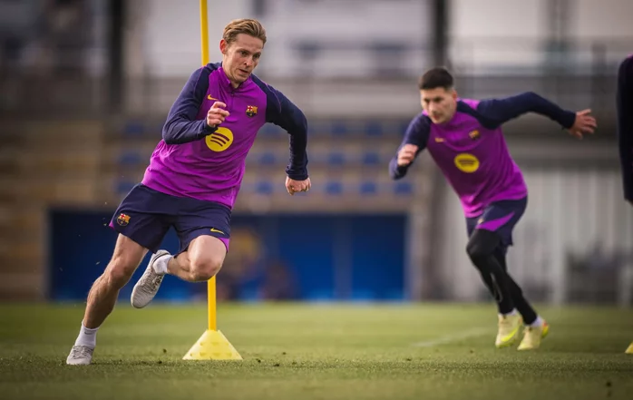 El técnico del conjunto azulgrana, Hansi Flick, ha dirigido una sesión en la que la principal novedad ha sido la participación de Frenkie de Jong, quien trabajó parcialmente con el grupo dejando sensaciones positivas tras avanzar en su recuperación. También se ejercitaron con el primer equipo Eder Aller, Dro Fernández, Tommy Marqués y Jofre Torrents, mientras que Ter Stegen, Pablo Gavi y Fermín fueron las tres ausencias del día. Los jugadores que fueron titulares ayer ante el Deportivo Alavés realizaron un trabajo de menor carga para facilitar la recuperación, mientras que Ronald Araujo sigue recuperándose de la gastroenteritis.